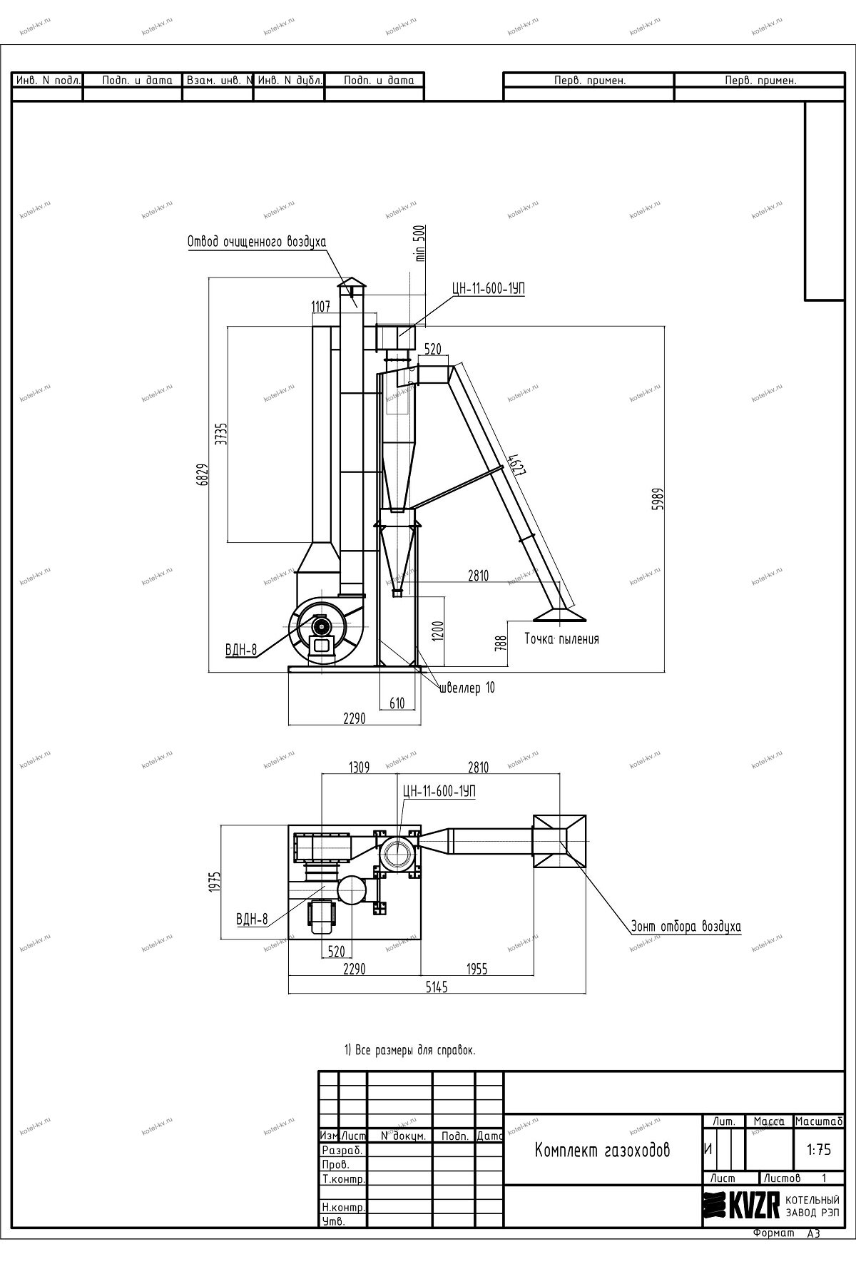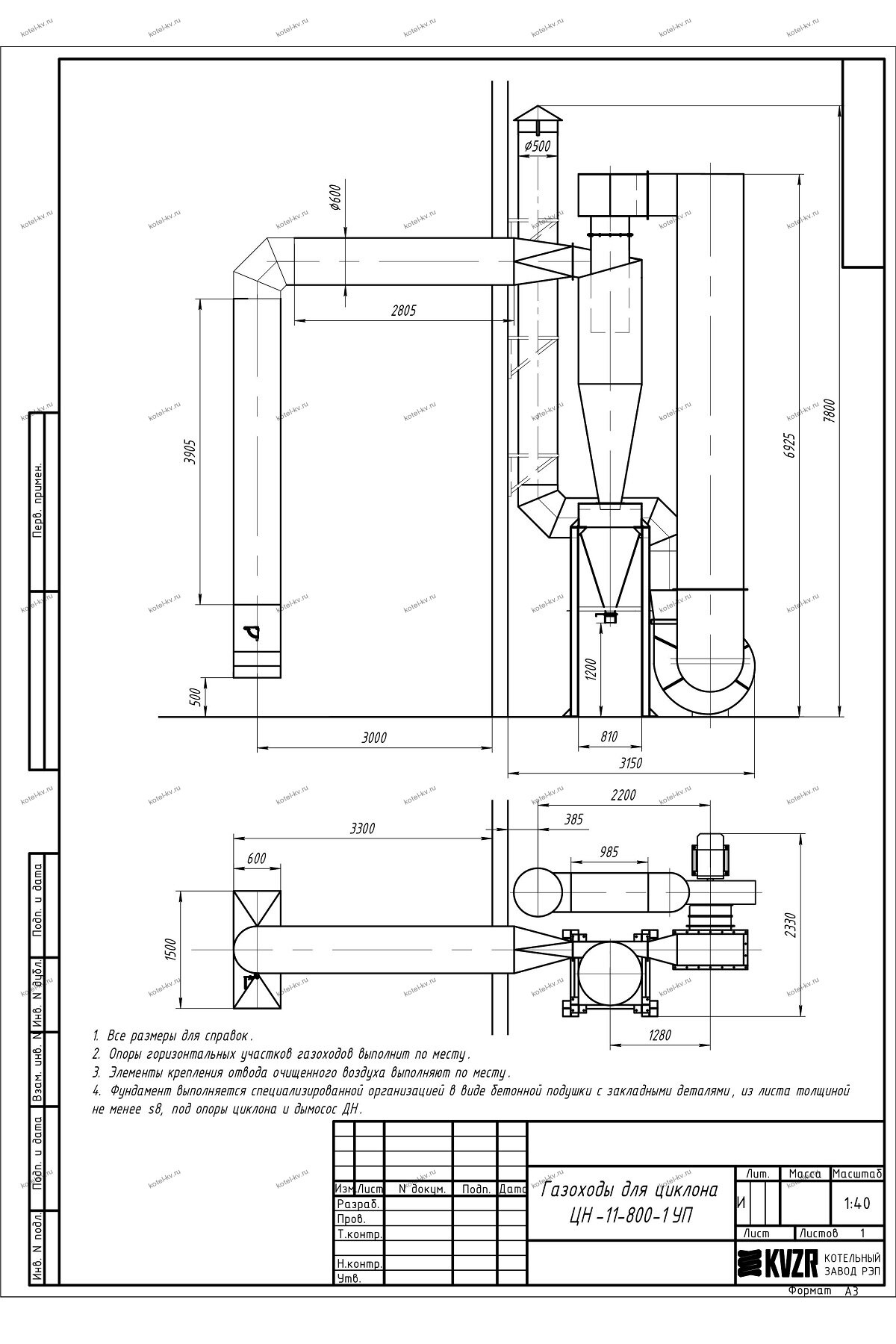Газоходы применяются с золоуловителями и циклонами следующих марок: