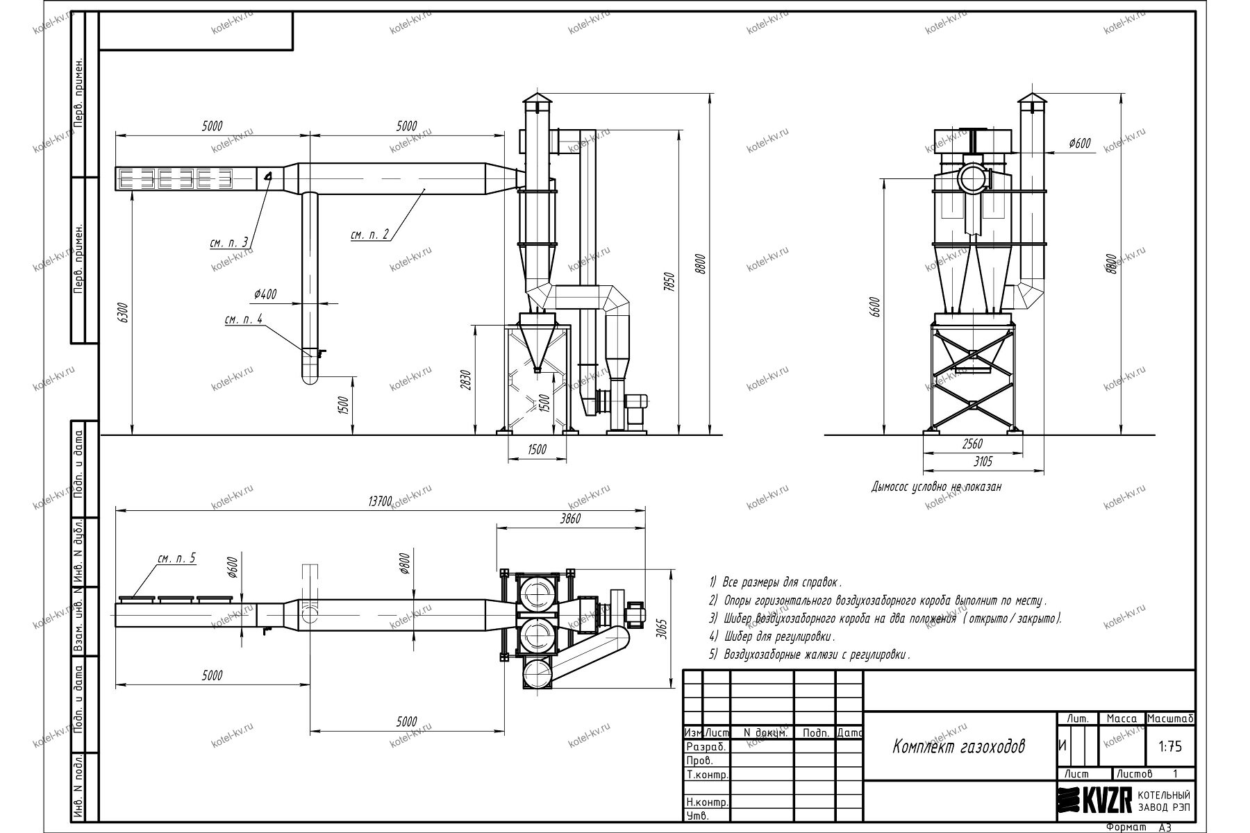 Площадь и форма сечения газохода подбирается индивидуально, в зависимости от технического задания заказчика.
