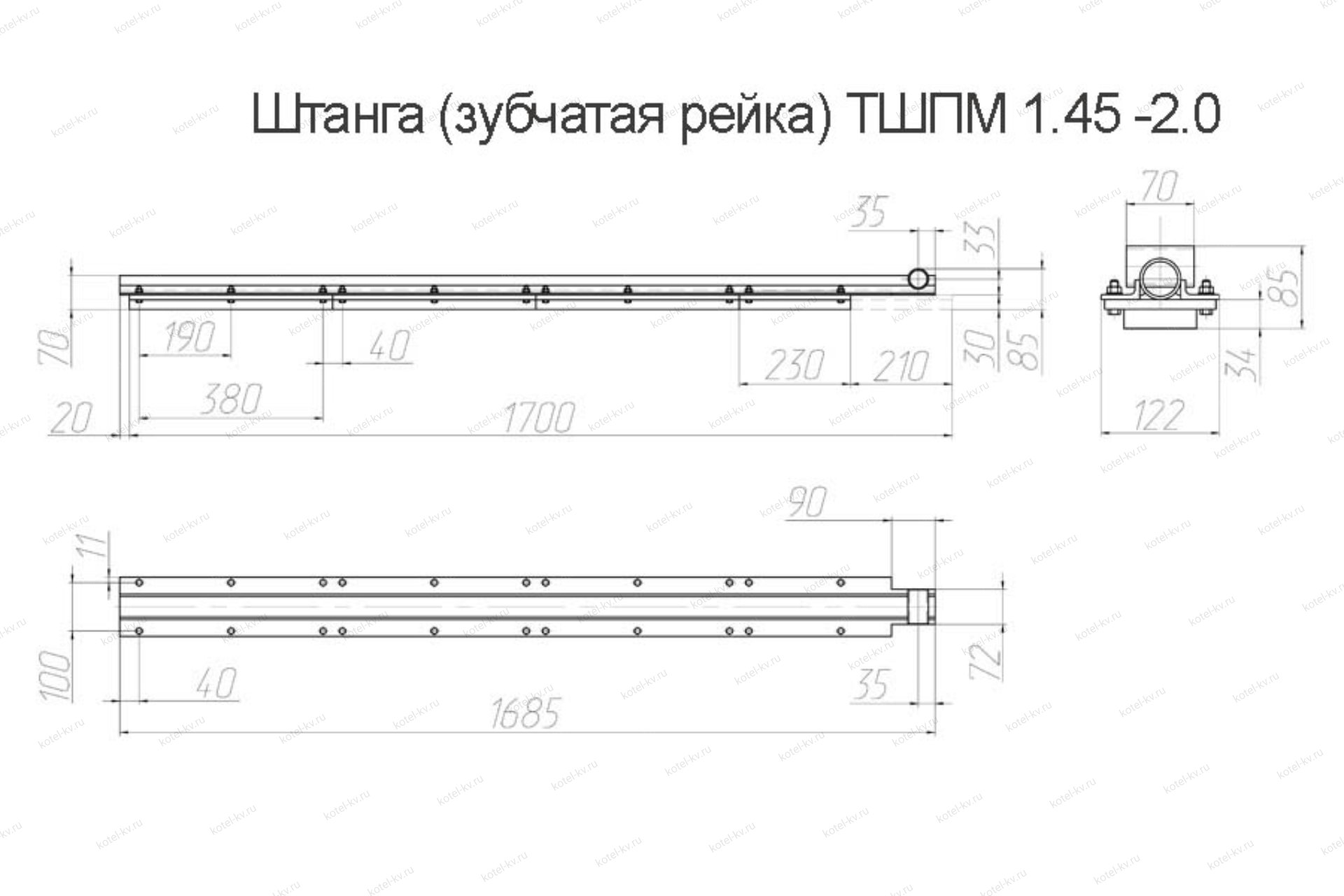 Штанга в сборе ТШПМ 1.5 - это стальная опора, на которую крепятся сегменты зубчатой рейки, крепится к секторному питателю и приводится в движение через зубчатое колесо приводом топки. Движущаяся штанга открывает шибер угольного бункера топки ТШПМ, приводит в движение каретку и шурующую планку.
